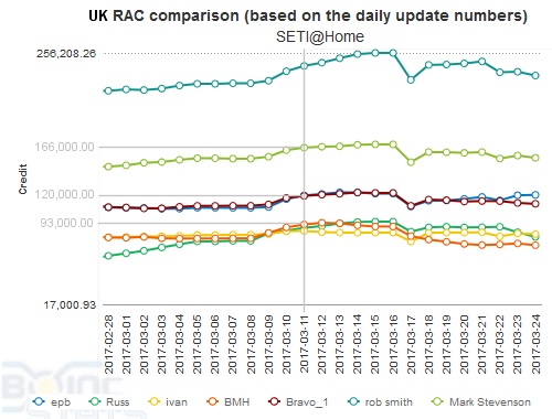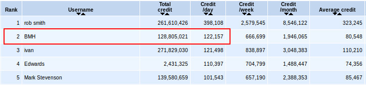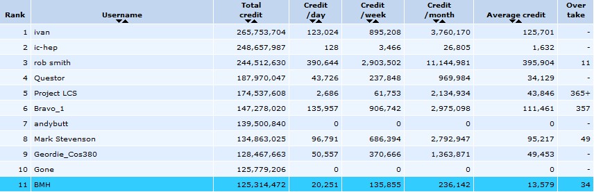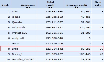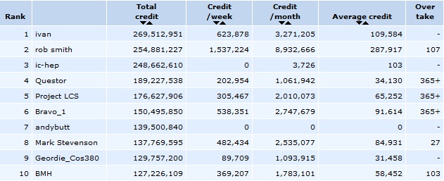 For the past few months my computers have been running flat-out while I eagerly watch my progress. I have been trying to gain a place in the leader board, but as fast as I’ve been gaining on the person ahead of me (who no longer takes part) there has been a person behind me chasing my tail with a higher average. It has been neck and neck as to whether I gain the place before they do. It has also been neck and neck as to whether I would gain this place before the British Summertime begins and I have to follow through with my personal agreement to switch all my computers off again. At the time of writing it looks like I might be 14 days short… what to do!?