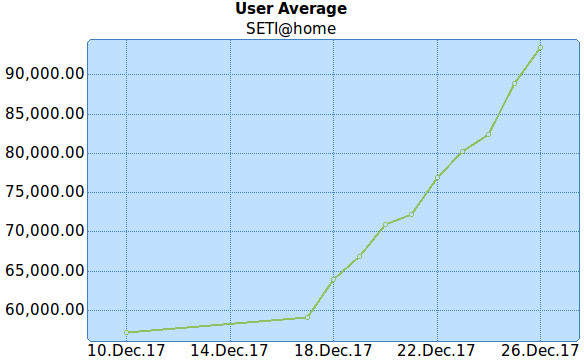 December, my second month since November, of running SETI@home 24/7, has been a fun and eventful time. November basically saw me unmothballing all of my systems following the summer months and getting the work units crunching again on all. One of my rigs, a Phenom X6, decided to be problematic from the start, and following a strip-down and rebuild while I moved the graphics card to another rig, even replacing the CMOS battery and powering up without the CPU installed to try and get it to POST at one point, until it sprang into life. This only lasted about a week or so though, and in the end I chose to source a replacement motherboard which is now up and running, albeit crunching “only” on the 6 x CPU cores rather than on a GPU. In addition to the above, I have been switching a couple of rigs over to Linux to exploit a number-crunching benefit there. I’ve tried a few different Linux “distros” over the years but with little success and limitations due to there being a few programs I use regularly which are Windows-based. Due to renewed encouragement and much-needed help on hand from my SETI@home team mates, I was able to complete the necessary steps not only to install Linux (which I had achieved before) but also switch to Nvidia graphics drivers, install the BOINC application, and tweak it for improved SETIing performance, something I had not been able to do before. I repeated my efforts and got Ubuntu installed on a second rig and now both are dual boot enabled so I can still use Windows when I need to, but my new-found confidence has seen me happily using Linux for much of my day-to-day computing such as blogging, watching Youtube, continuing my language-learning on Memrise, popping into Second Life from time-to time, and even printing (my Epson printer required no effort on my part to install, it just worked.) The switch to Linux on these rigs has seen my RAC (Recent Average Credit) continue its climb and it’s still climbing – where it’ll stop, nobody knows! Last year I believe I peaked at 80K.