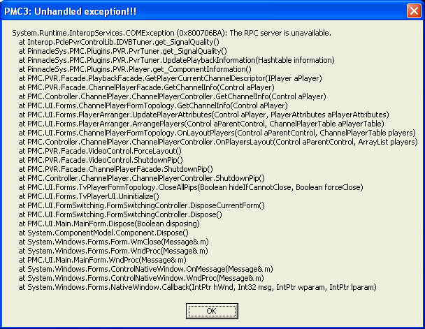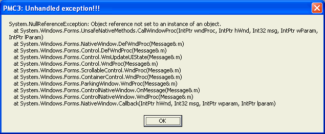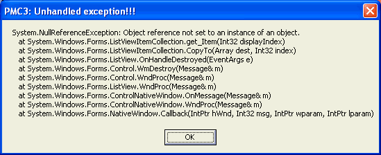 PMC3: Unhandled Exceptions!!! & Pinnacle