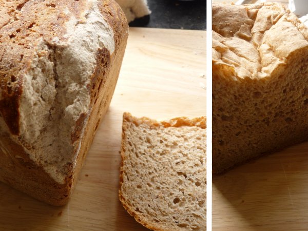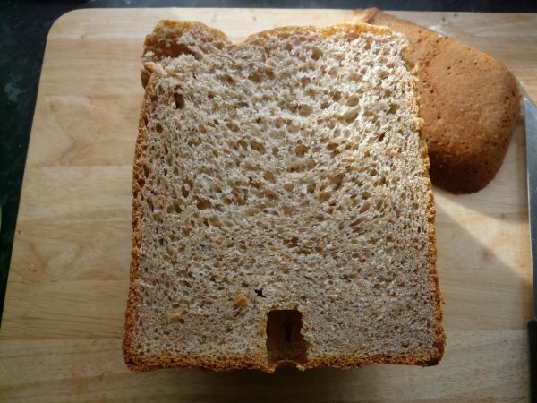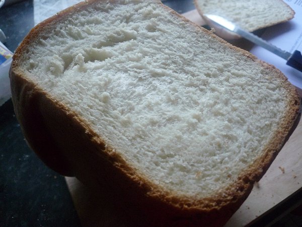 It turned out the machine was sat on an uneven worktop. Often now I check, part the way through the mixing cycle, to ensure all the flour is mixed into the forming dough. Soft and fluffy and white...