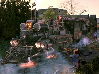 The Enterprise in Star Trek when it travels around the Earth real quick.